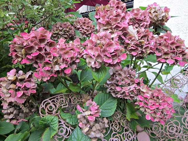 Pieni osa Cellen hotellin Fraun hortensioista syksyllä 2015.